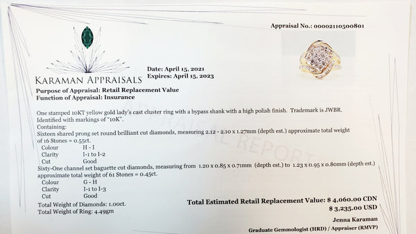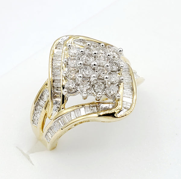 10kt yellow gold ring with prong set round brilliant cut diamonds 1.0ct