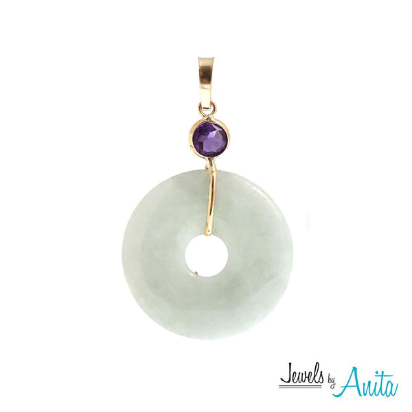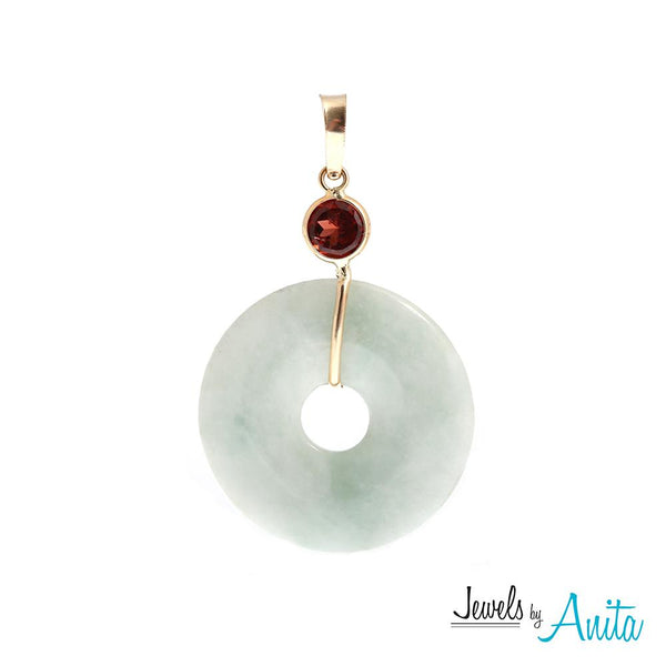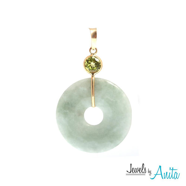 14KT Yellow Gold Jade Disc Earrings and Pendant with Genuine Gemstones