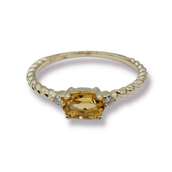 10K Yellow Gold Ring Set With Genuine Oval Gemstones 6x4mm and Diamonds