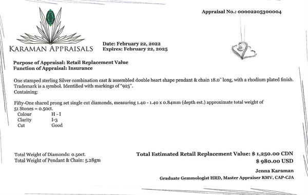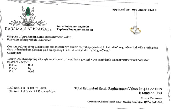- Sterling Silver Double Heart Shape Pendant and Chain 18"