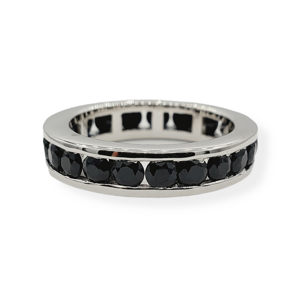 • (c): 21 Channel set round cut 3x3mm natural black sapphire 3.15ct, Ring Weight: 3.71 grams, Ring Size: 6.5